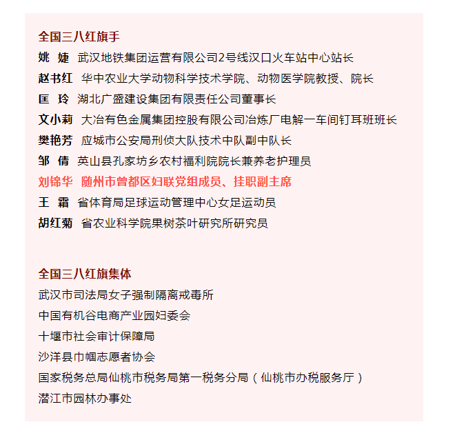 湖北省有以下个人和集体获此殊荣