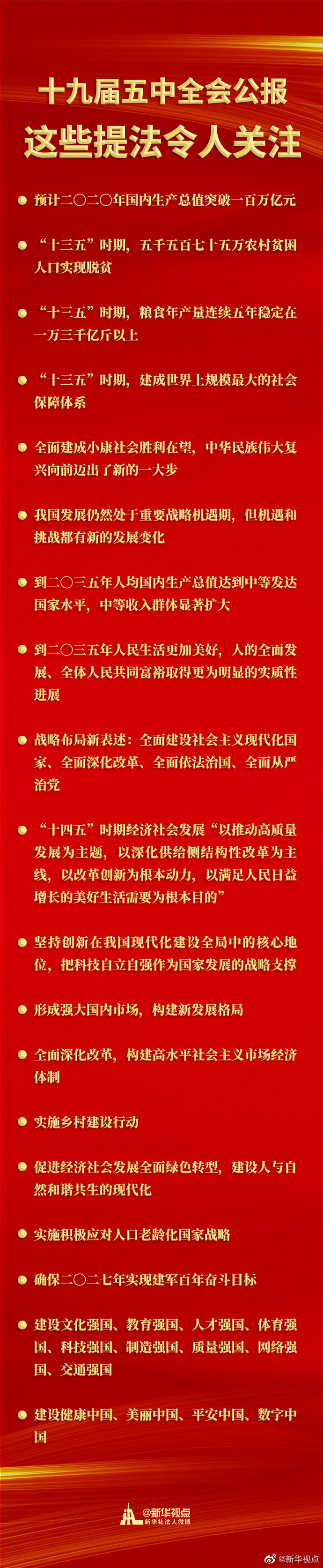 面向未来,全会及其通过的建议擘画了中国未来5年以及15年的发展新蓝图,宣示了以习近平同志为核心的党中央带领全党全国各族人民同心同德、顽强奋斗,夺取全面建设社会主义现代化国家新胜利的坚定决心。