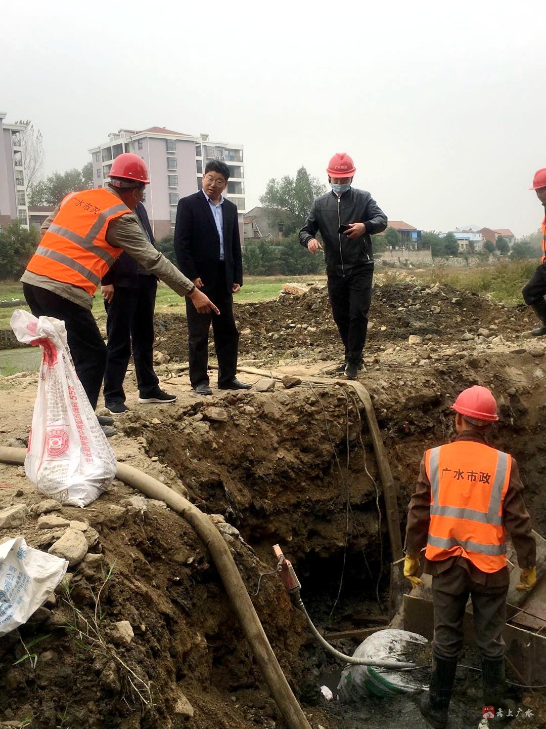 接着,田涛实地察看了西河(长胜河)污水管网改造施工情况,要求广水市政公司在施工时全面仔细排查污水管道、找出所有隐患、建立工作日志,在确保施工人员安全的前提下,抢抓工程进度,迅速整改修复错接、漏接、破损管网,确保污水入厂、清水入河。