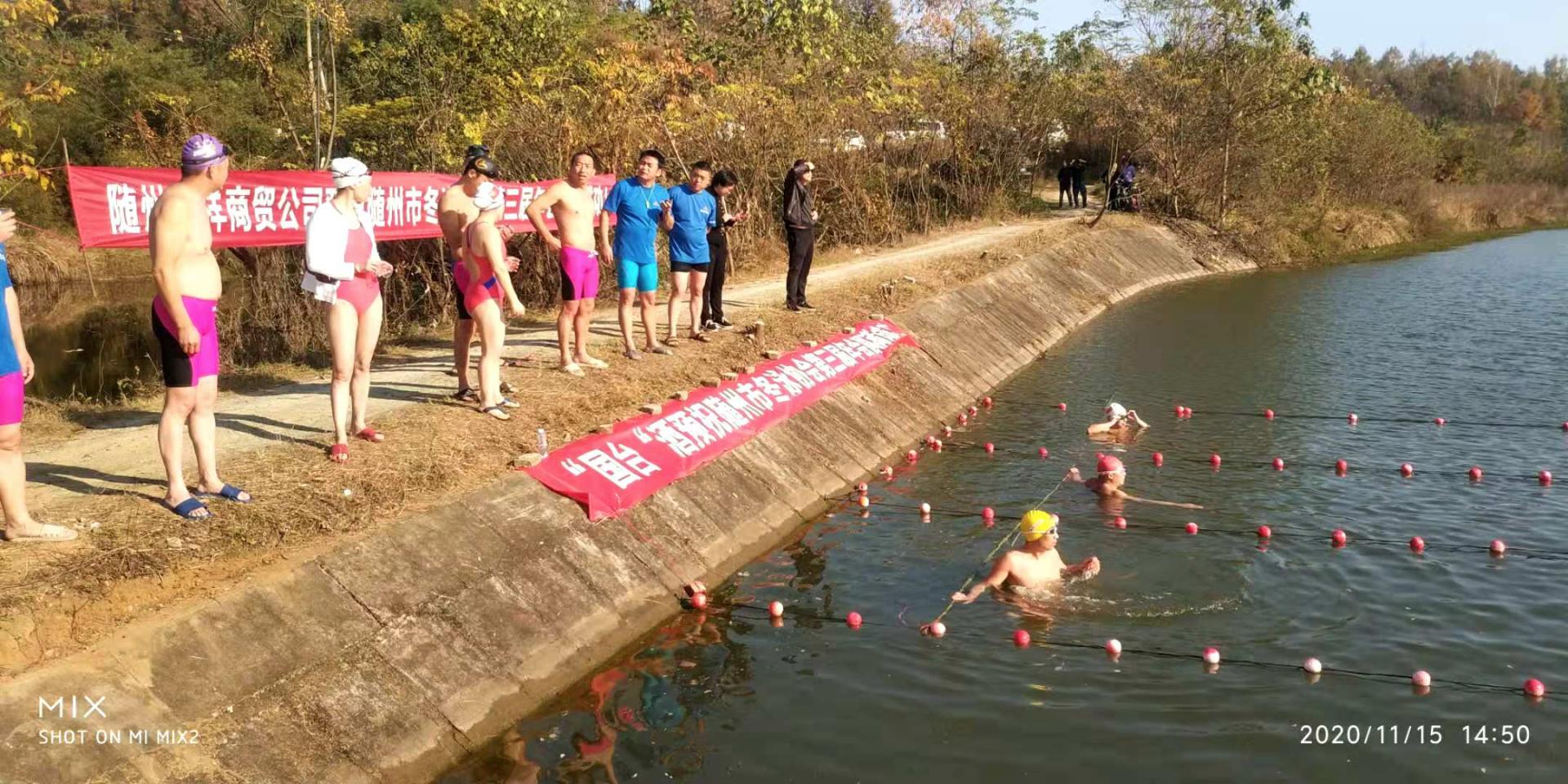 11月15日下午,随州市冬泳协会在城南小堰塘举办冬泳比赛,来自全市70余名冬泳爱好者参加比赛。