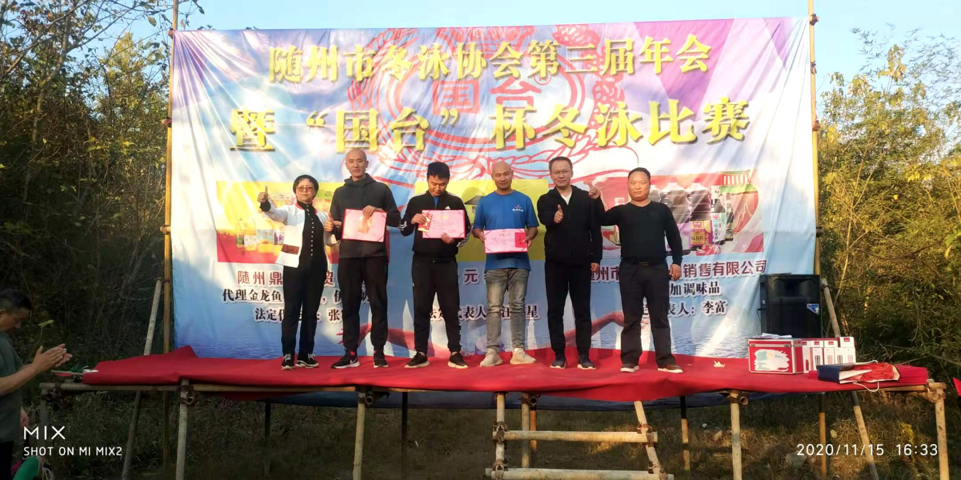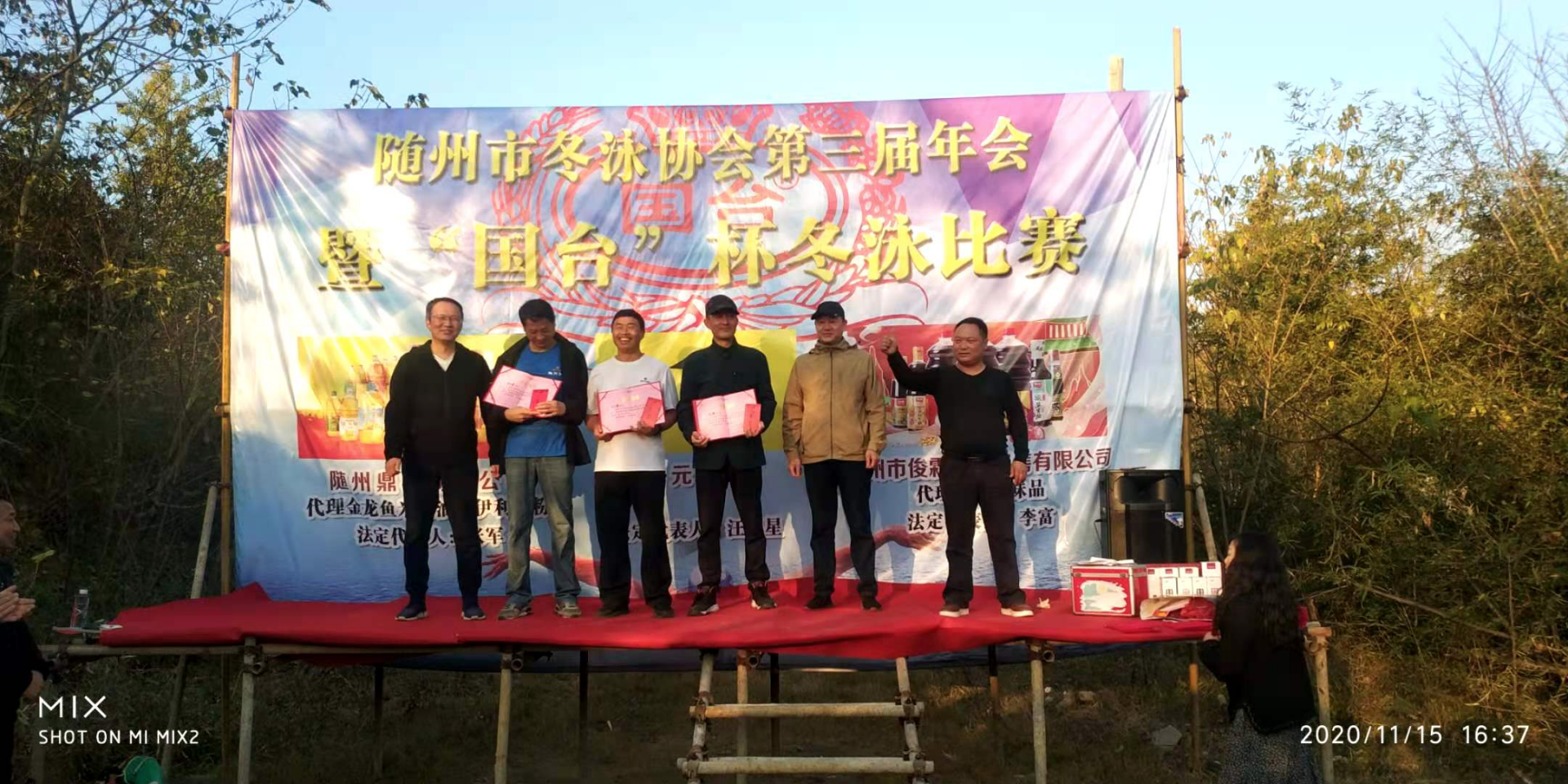 最后对参加这次冬泳各项比赛的一二三等奖颁奖。