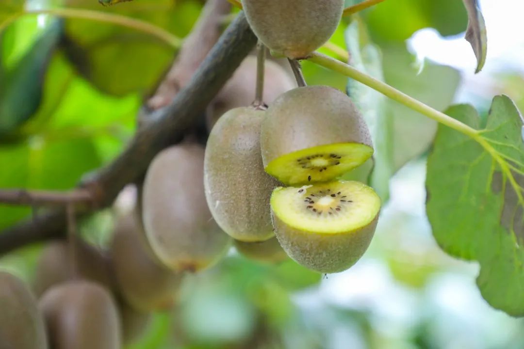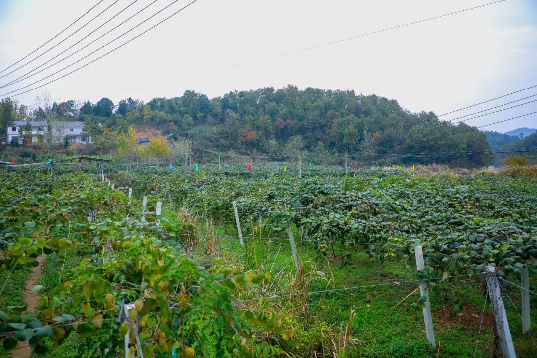 基地种植的猕猴桃,主要是阳光金果、魅力金果、东红等新西兰品种,经过中科院武汉植物园种植专家的技术指导,前期进行“改土”,让土质更加适合种植猕猴桃。基地不打药,施有机肥,采取割草机割草,用白酒、糖、醋调配的糖醋液进行物理除虫。
