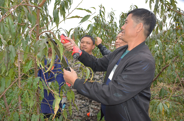 当年,丁东风牵头成立“王奶奶”种养殖专业合作社,重点发展适合当地气候环境的油桃、梨子、葡萄等水果产业和生猪养殖业。合作社统一提供种苗,农户种植见效后再付种苗款,采取集中培训、现场指导、群里交流方式指导技术,还以“保底收购”方式解决农户销售难题。“合作社提供一站式全套服务,很受大家欢迎。”新街镇姚庙村村民张祖华说,他家种有350余亩桃李,技术人员每月现场指导两三次,价格有保障,产品不愁销。