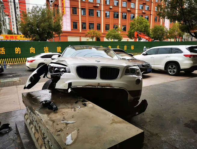 在现场记者看到,酒店门口石狮子被撞倒在地,白色的宝马车正搁在石狮子的底座上,车辆的右轮、前灯、保险杆都受伤不轻,撞碎的零件散落一地。回想事发的情形,车主黄女士还有些呆呆的。黄女士说当时只想把车停在酒店门口的车位上,不想一下就出现这样的意外。