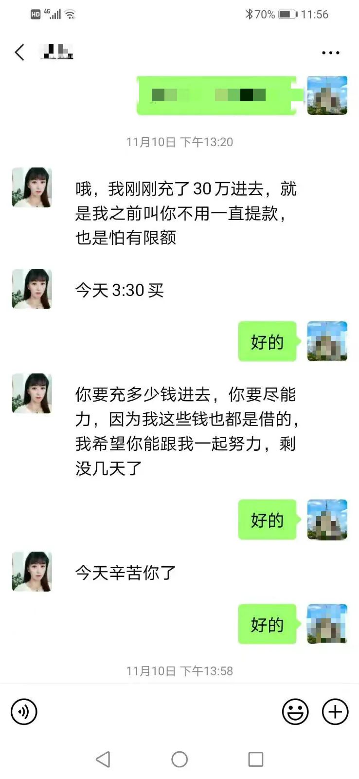 并按她告知的时间点充值买进