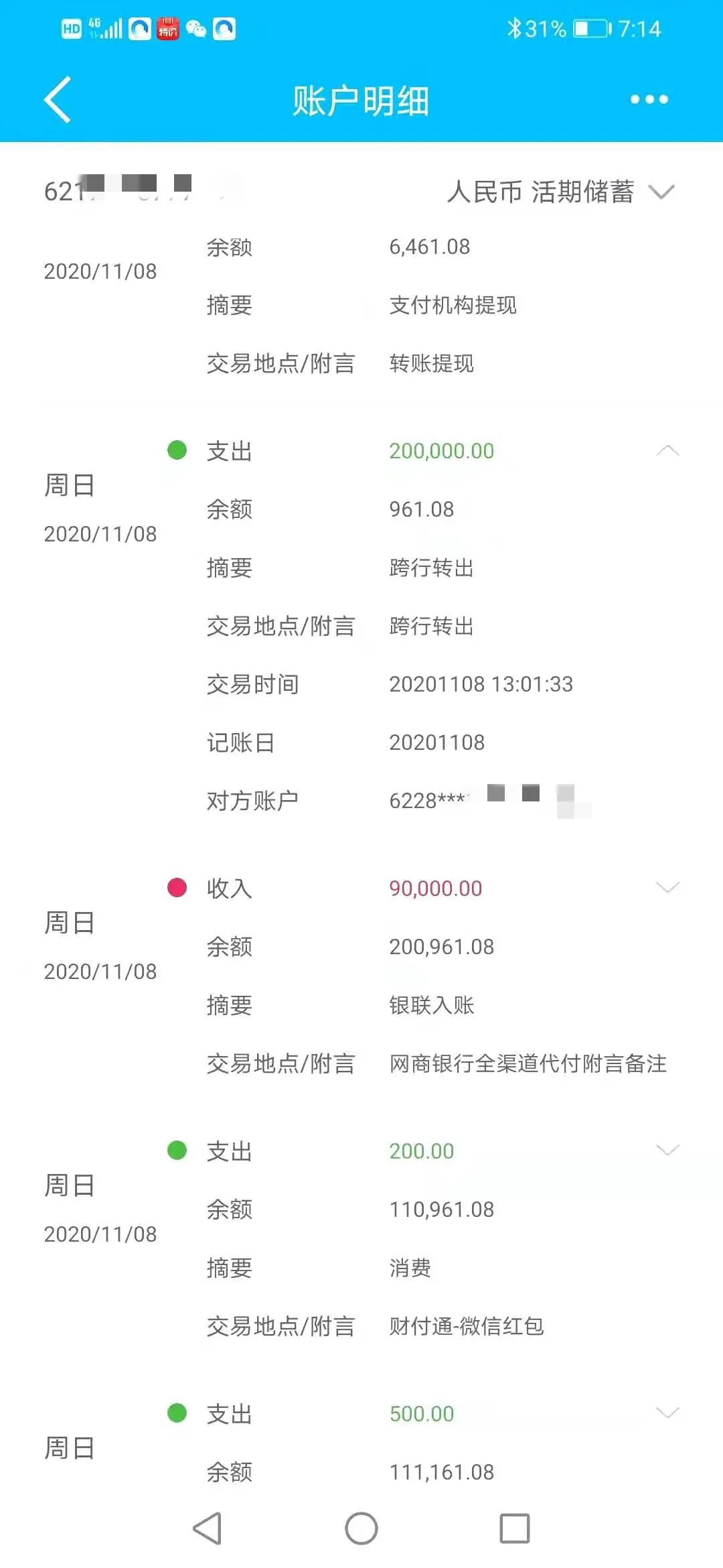 看着账户余额中的307000元
