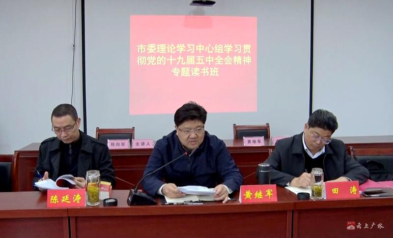 黄继军指出,党的十九届五中全会,是在我国即将完成“十三五”规划、全面建成小康社会收官的关键时期召开的一次重要会议。全会审议通过的规划《建议》,充分彰显了以习近平同志为核心的党中央高瞻远瞩的战略眼光、统揽全局的战略谋划、审时度势的战略决策、矢志不移的战略定力,是动员全党全国各族人民在新的历史起点上开启全面建设社会主义现代化国家新征程、向第二个百年奋斗目标进军的纲领性文件。大家要深入学习钻研,充分认识规划《建议》的重大意义,做到学深悟透、统一思想、凝聚力量,沿着习近平总书记和党中央指引的方向,擘画好广水市“十四五”美好蓝图,奋力谱写新时代广水高质量发展新篇章。