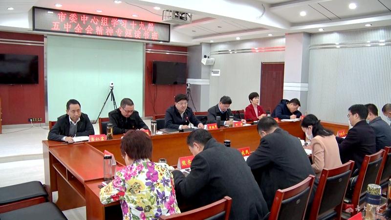 11月20日,广水市委理论学习中心组学习贯彻党的十九届五中全会精神专题读书班结业。会议强调,要深入学习宣传贯彻党的十九届五中全会精神,切实把思想和行动统一到党中央决策部署上来,深刻理解和把握全会提出的要点,提升贯彻新发展理念、构建新发展格局的能力和水平,切实将党的十九届五中全会部署转化为广水的“施工图”,擘画好广水市“十四五”美好蓝图,奋力谱写新时代广水高质量发展新篇章。
