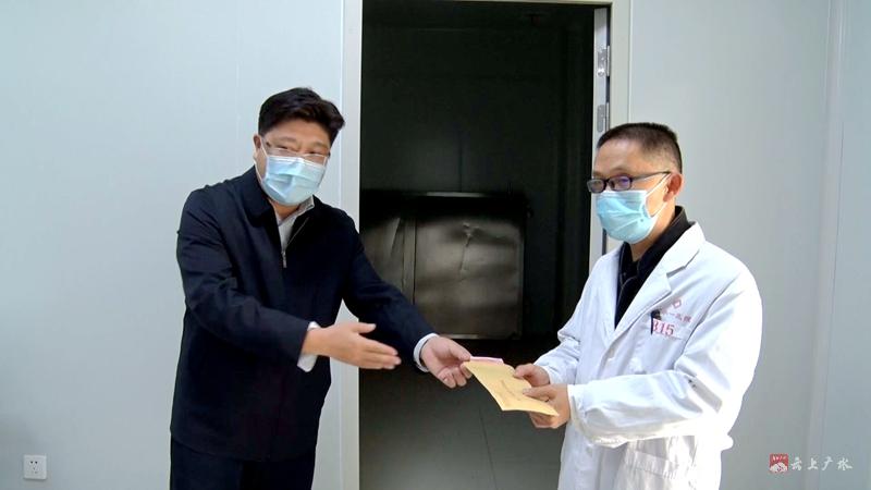 在广水市一医院,黄继军亲切看望了广水市第一人民医院感染性疾病科主任,副主任医师、全国抗击新冠肺炎疫情先进个人陈庆山,了解他的工作生活情况。