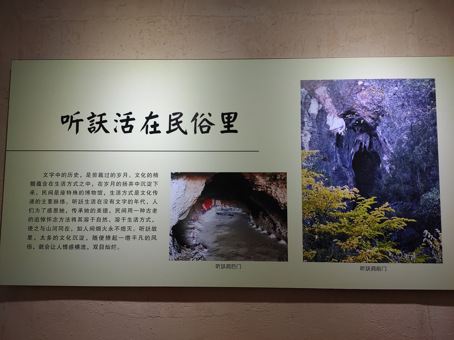 赤水上游仙人山上有个洞穴,因听訞出生此洞而得名。又因她是倡导对偶婚、践行一夫一妻制的第一人,后来被民间祀为主管婚姻生育的媒神;她还首植并倡导大家栽白果树福荫乡里,又被祀为白果仙子;此洞又名仙人洞,该山得名仙人山……洞内祭奠听訞的香火兴旺至今。