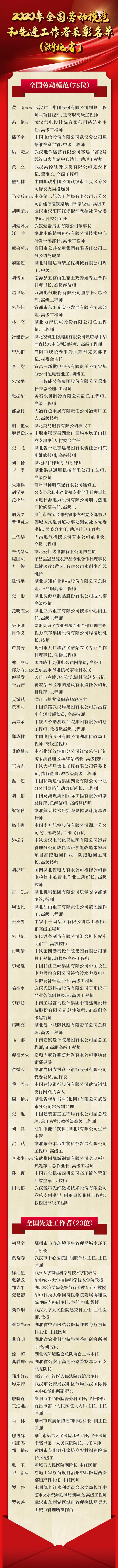 湖北省获得表彰人员名单如下