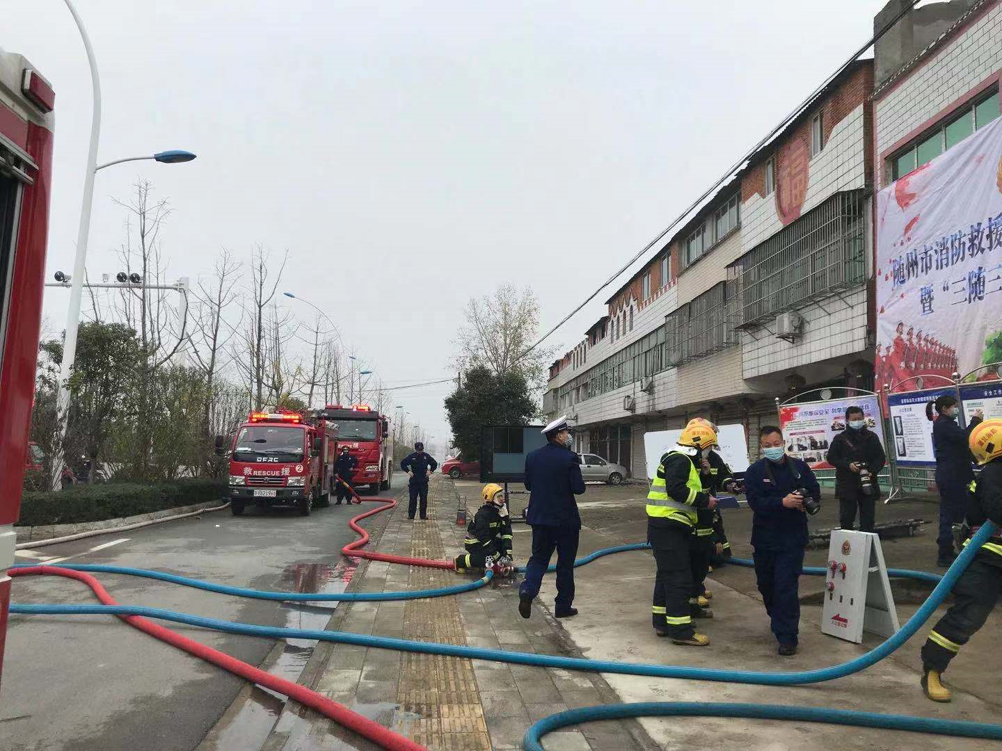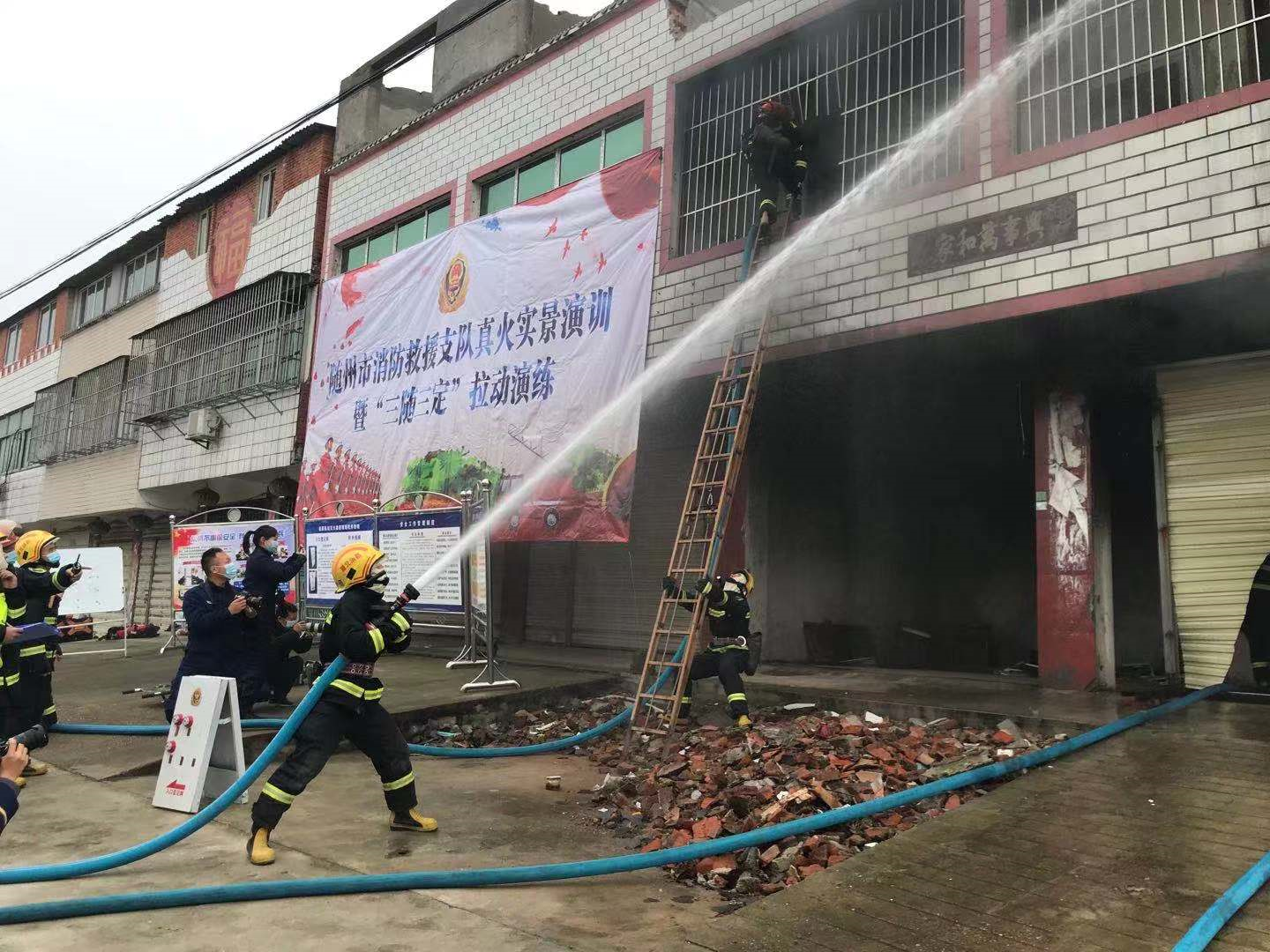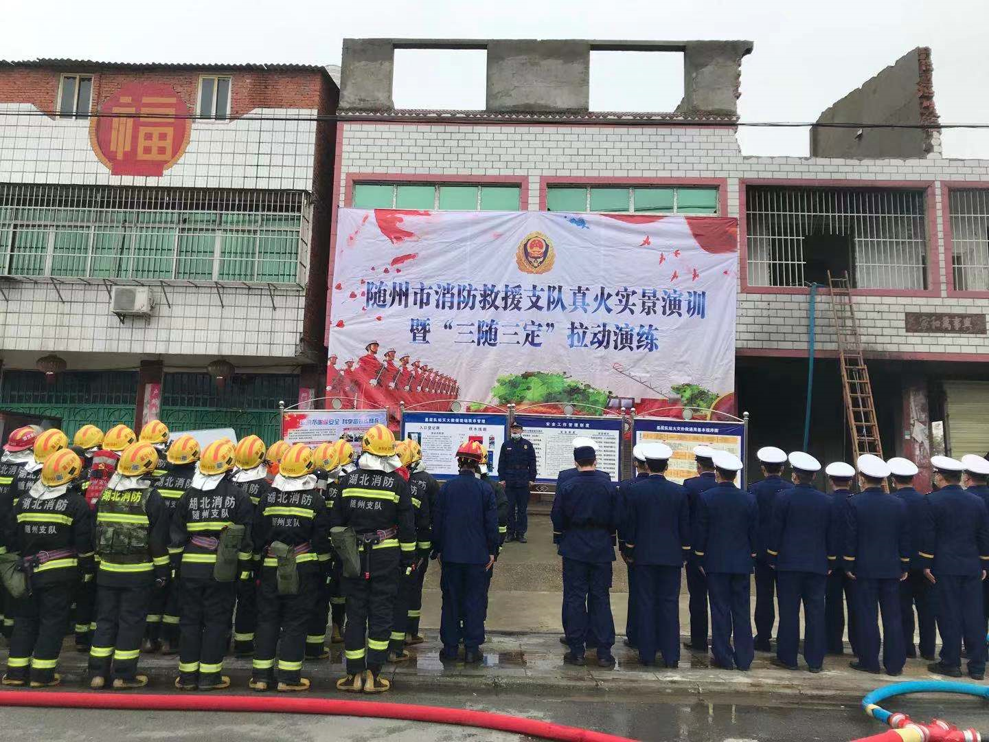 11月26日,随州市消防救援支队在高新区淅河镇开展真火实景演训暨“三随三定”拉动演练。