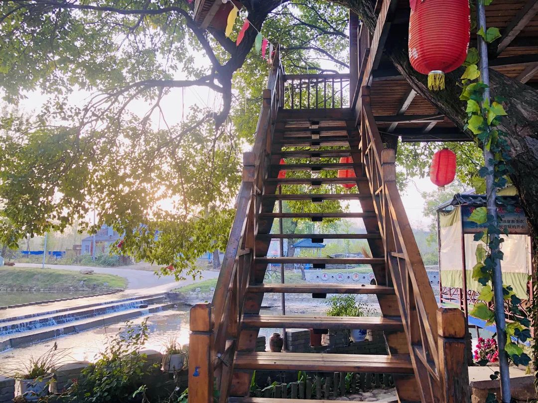 【有巢氏树屋】位于随县明玉珍故里景区旁边,掩映在古银杏郁郁葱葱的枝叶之中,宛如童话中的梦幻城堡。