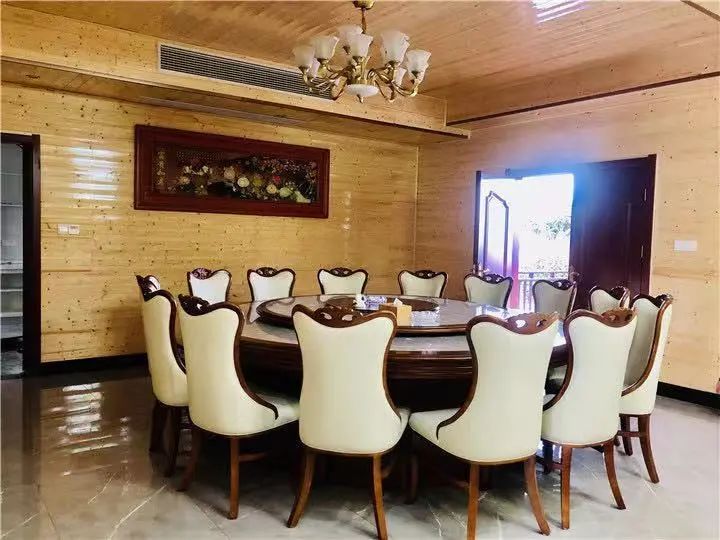 实木材质,装修雅致。餐厅、会议室、KTV,一应俱全,是度假的好去处!
