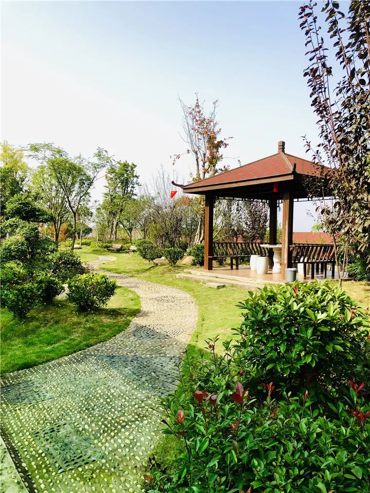 一湖碧水荡漾,绿树环绕掩映,庭院之中曲径通幽,处处都是怡人的风光。