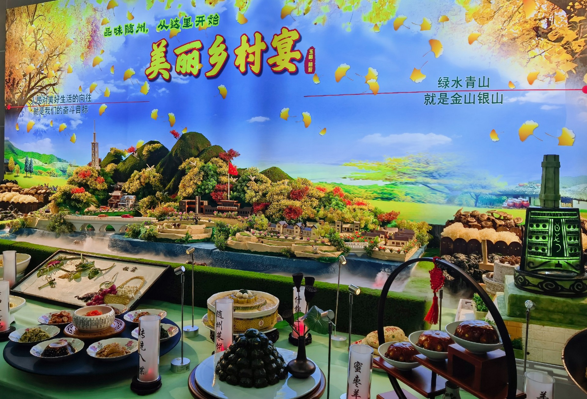 和第二十九届中国食品博览会同时展出的还有楚菜美食展,我市随厨餐饮企业赴汉参展,这次楚菜展的主题为美丽乡村宴,他们结合随州饮食文化,以美丽乡村大洪山为主题背景,将随州品牌和随州特色融入到了楚菜美食展。