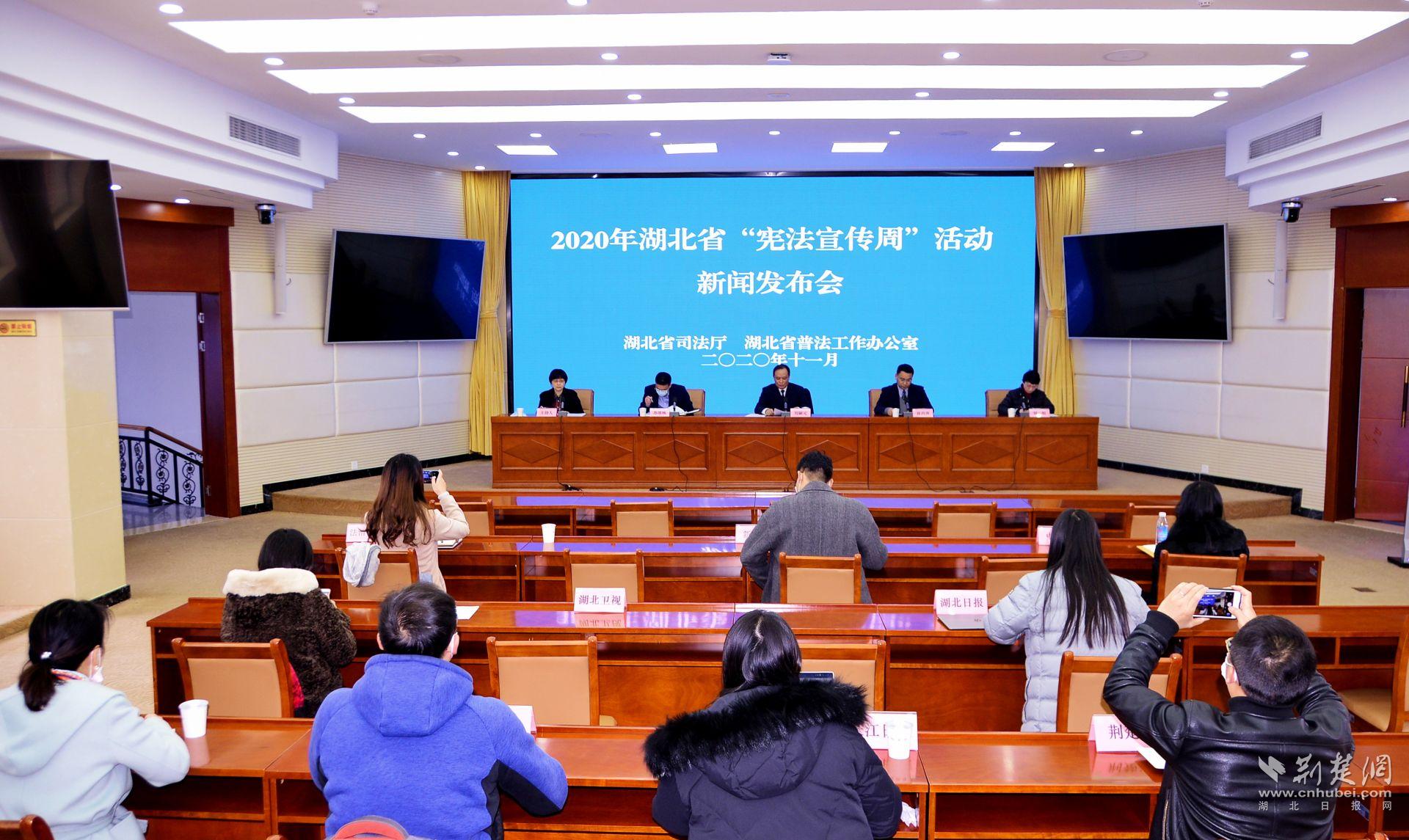 11月27日上午,湖北省司法厅、省普法办举行2020年全省“宪法宣传周”活动新闻发布会,发布“宪法宣传周”活动安排以及全省普法依法治理工作的相关情况。