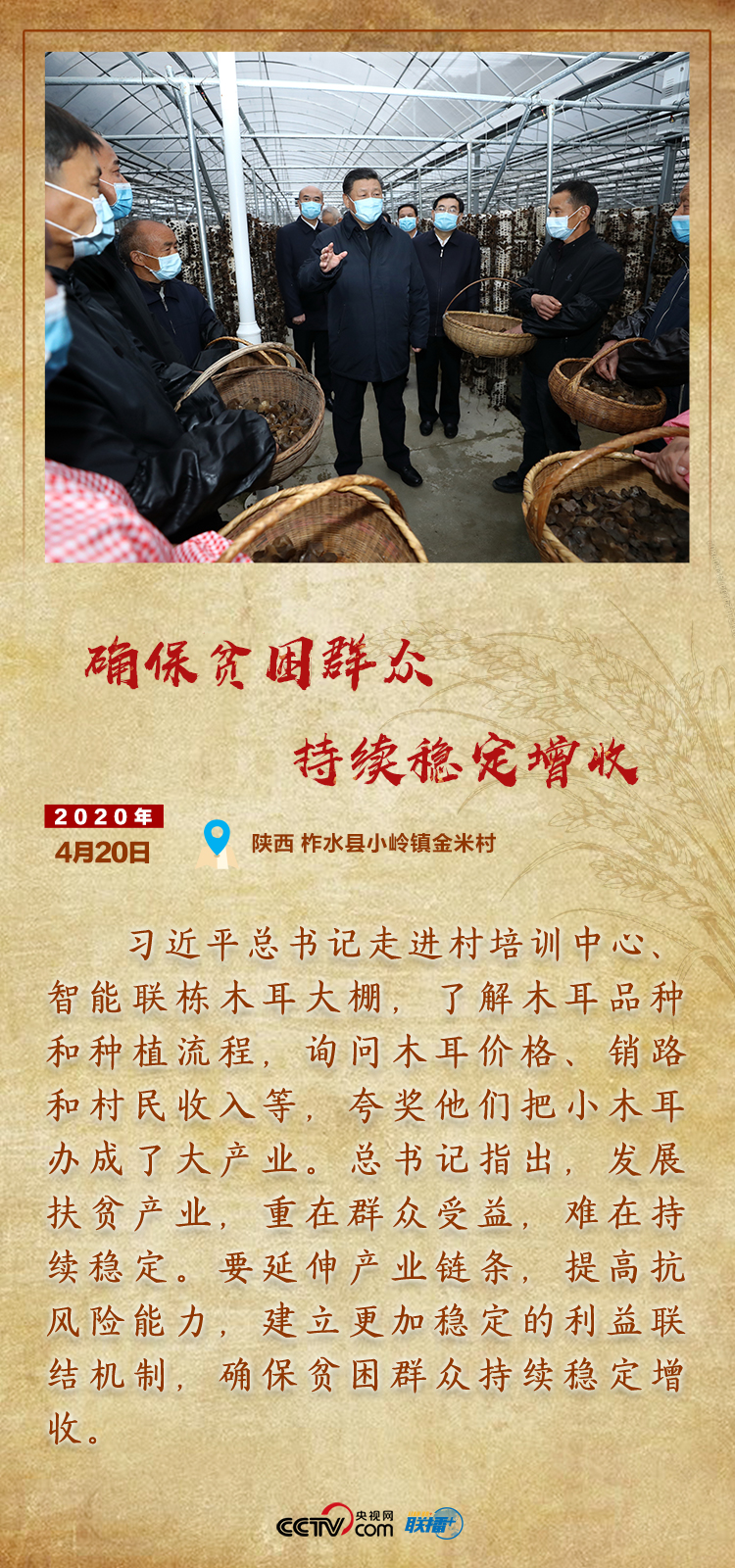 今年是全面建成小康社会目标实现之年,也是全面打赢脱贫攻坚战收官之年。面临新冠肺炎疫情,习近平总书记始终心系贫困群众,用行动践行庄严承诺,田间地头、扶贫车间、村民家中……处处留下总书记的扶贫足迹。