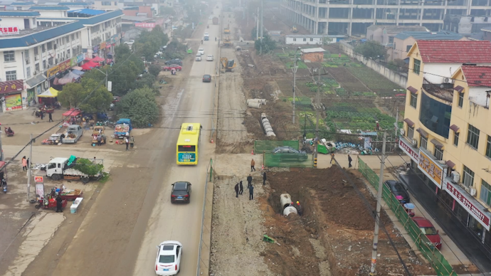 【采访】何晓希:南郊片区擂鼓墩大道承担的地下管线都是供气、供水还有弱电管网的主管网,所以地下管线很复杂。包括天上的高压线也是承担着主城区的主要供电压力,所以我们在施工中,施工方要求做好安全措施,然后尽量的压缩工期,减少大家的出行压力。