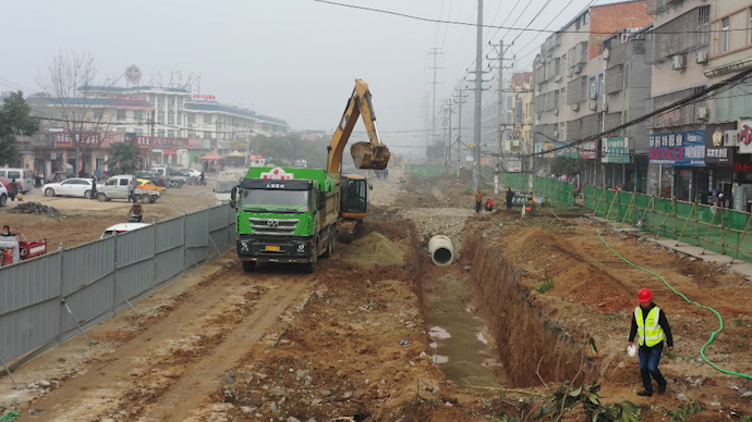 市建投公司擂鼓墩大道改造建设项目秘书何晓希介绍,自施工以来,各项工作进展顺利。目前,正在施工的是雨水管预埋和雨水管的检查井的浇筑工作。不同于其他路段的检查井采用砖砌模式,此次改造的擂鼓墩大道检查井采用现浇的模式来进行浇筑。