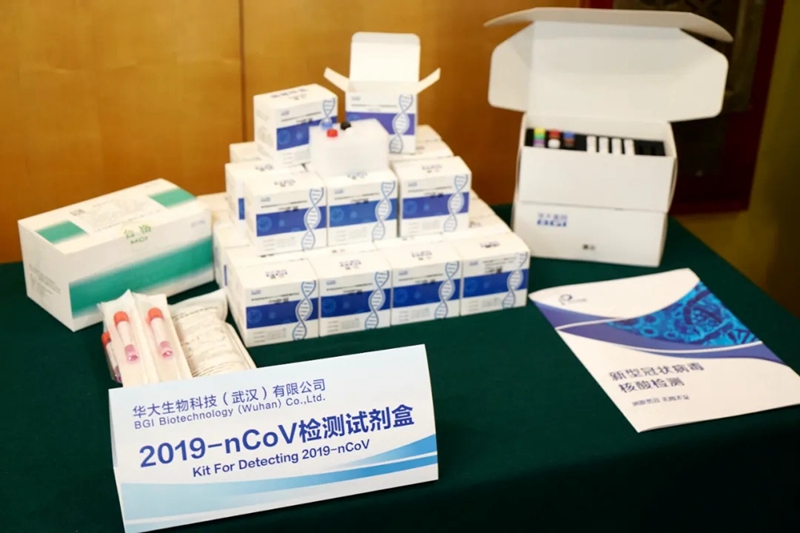 图为12月8日在捐赠仪式上拍摄的核酸检测试剂盒。