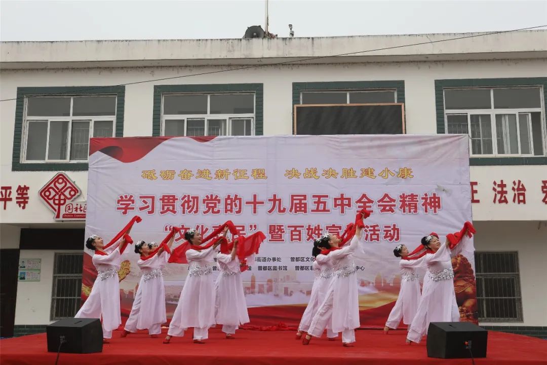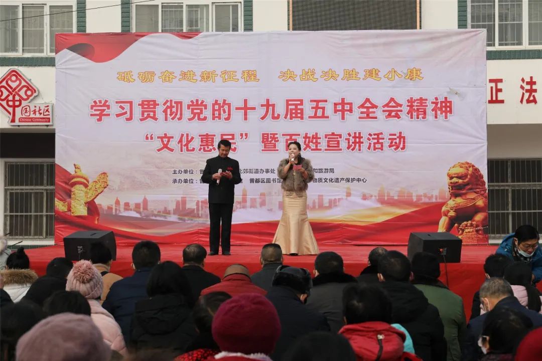 “生活有滋有味,想唱我就张开了嘴,罗喂嘿罗喂,越唱心里越美。”欢快的舞蹈跳起来,愉快的歌声唱起来······12月11日,大雾弥漫,天气严寒,但曾都区北郊街道办事处汲水湖村依然热闹非凡,以“砥砺奋进新征程、决战决胜建小康”为主题的学习贯彻党的十九届五中全会精神文化惠民暨百姓宣讲活动精彩上演,百余名村民齐聚在此聚精会神观看演出。