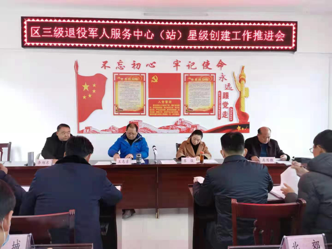 会议要求,要按照试点先行、全域覆盖的整体思路,在已建立乡镇(街道、管委会)、村(社区)服务站的基础上,稳步推进以区退役军人服务中心为支点、乡镇(街道、管委会)退役军人服务站为骨架、村(社区)退役军人服务站为脉络的星级示范创建工作,要持续推动全区退役军人服务中心(站)建设和服务保障工作提档升级、提质增效,力争通过三年的时间,80%以上服务中心(站)达到现行《标准》三星以上,并建成一批四星级、五星级的全国性、全省性标杆、示范服务中心(站)。