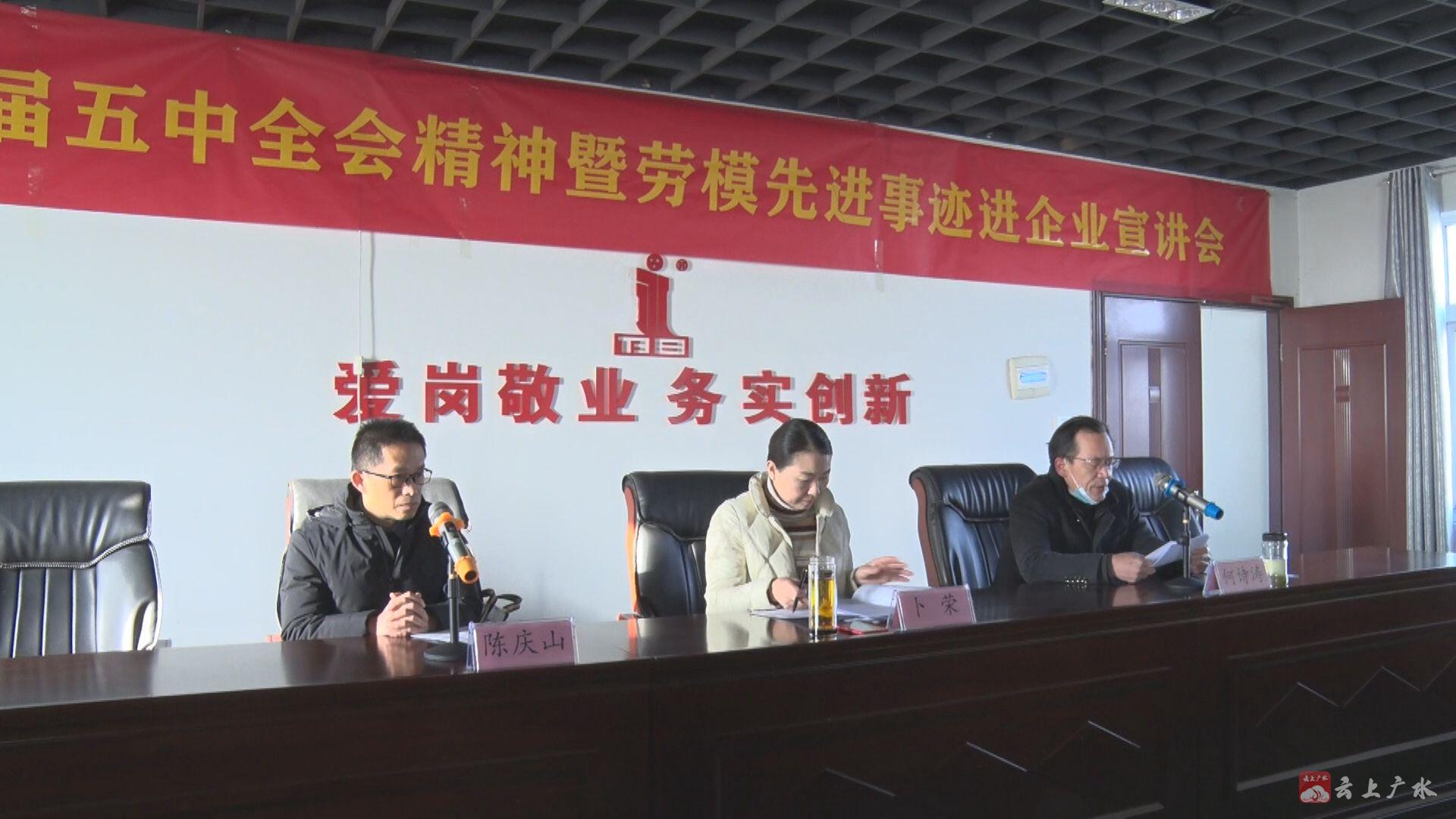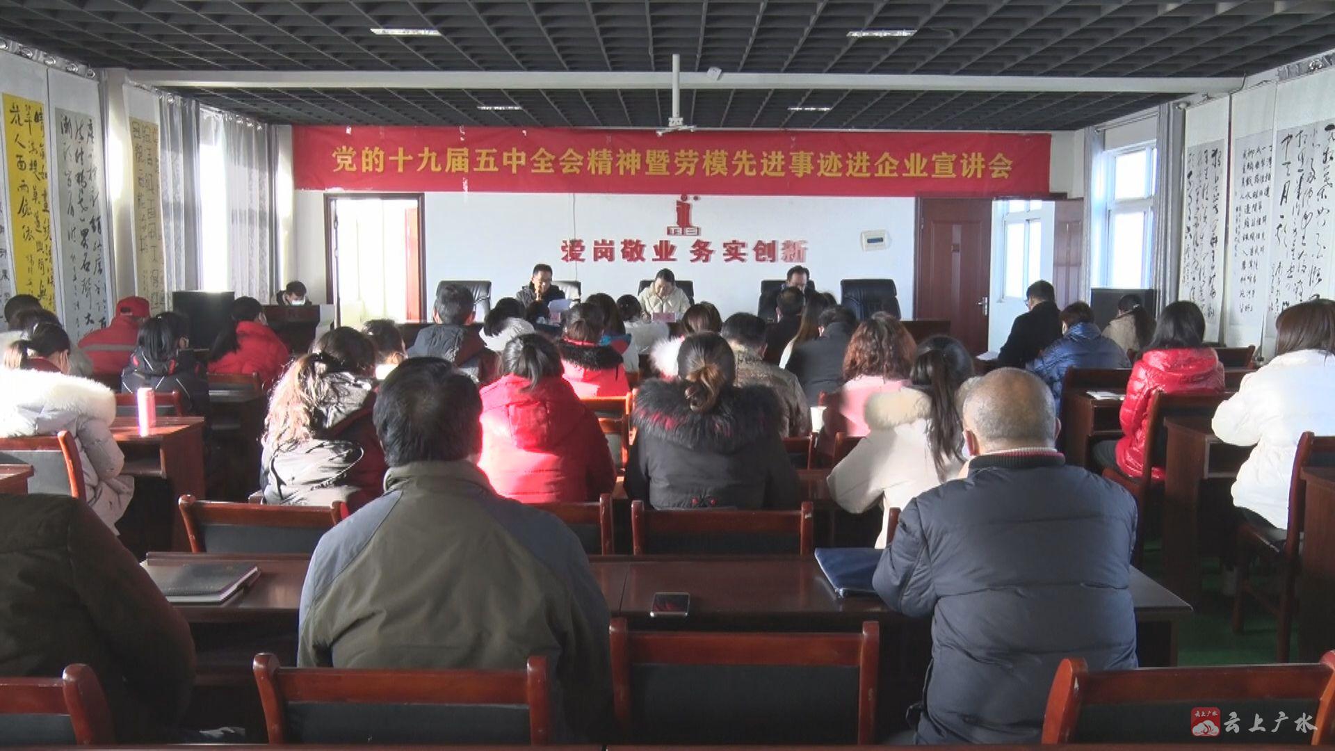 12月15日,广水市总工会在永阳防水公司组织开展党的十九届五中全会精神暨劳模先进事迹进企业宣讲会,大力弘扬劳模精神,加强党的十九届五中全会精神宣讲和引导,激励广大干部职工爱岗敬业、埋头苦干,凝聚起夺取“双胜利”的强大精神力量。