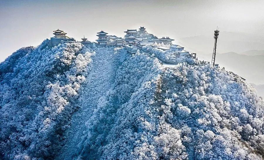 山坡上、树林间,晶莹剔透雾凇冰凌