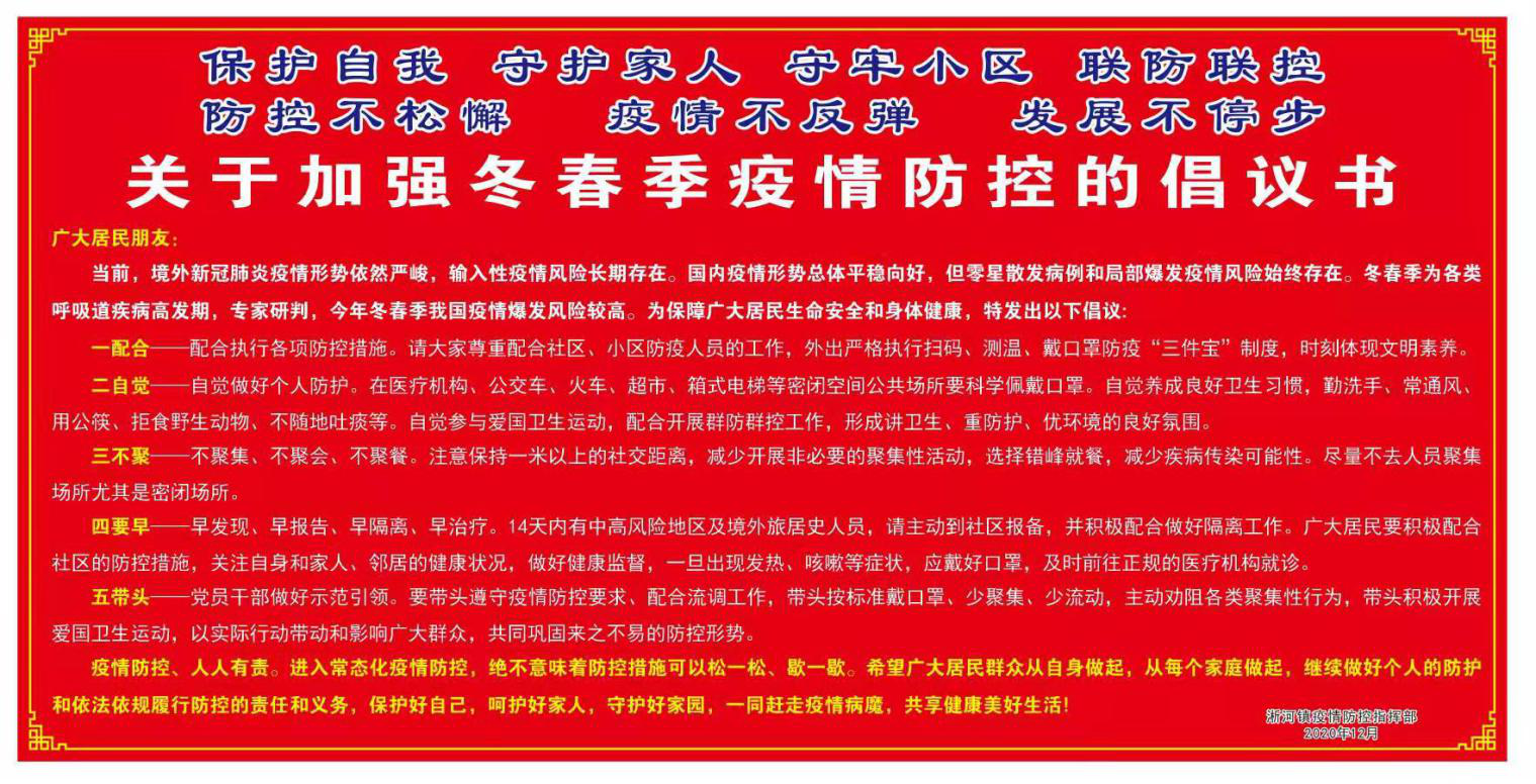 二是通过宣传标语、海报、电子屏、宣传栏、张贴《关于加强冬春季疫情防控的倡议书》,滚动播放宣传标语等宣传形式推进防控关口前移、重心下沉,推动疫情防控要求进学校、进机关、进企业、进社区、进家庭;深入开展爱国卫生运动,营造干净整洁的工作生活环境。