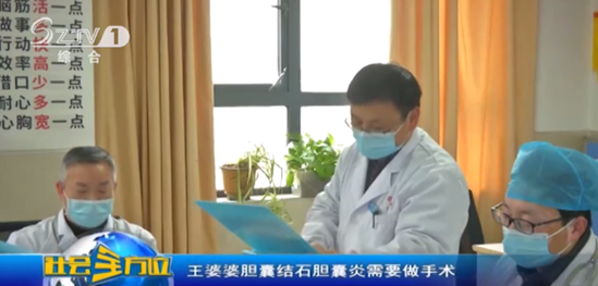 【同期声】曾都医院普外科主任 聂明:王婆婆胆囊结石胆囊炎,需要做手术,但是她安装了起搏器,还放过心脏支架,所以手术中很可能会出现心脏骤停,导致生命危险,我们大家一起来商讨一下,制定一个方案。