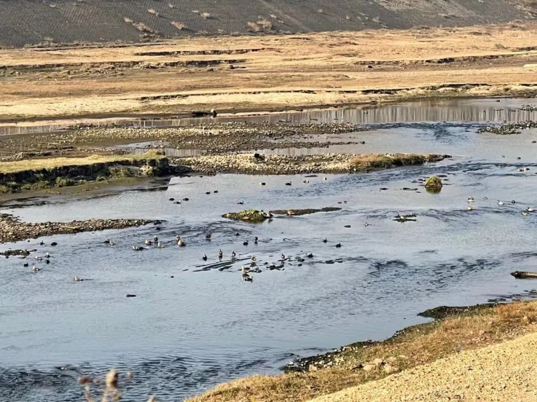 阳光下的河面,折射出金黄色光辉,十几只鸭子在河面上嬉戏,这是厥水河治理有效的真实写照。