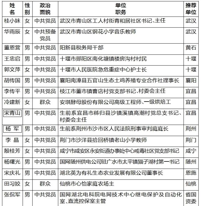 经全省各地各部门层层推荐,省委宣传部组织评审,“荆楚楷模”11月至12月上榜人物名单揭晓,本报今日予以发布。