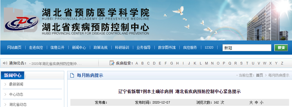 2020年12月26日,辽宁省沈阳市和大连市分别新增3例和4例本土新冠肺炎确诊病例,流行病学调查及密接排查工作正在进行中。目前,辽宁省沈阳市和大连市疫情形势严峻复杂,为防止疫情输入,我省将对上述地区来鄂返鄂人员开展健康监测管理工作。现对广大群众提出如下疫情防控建议:
