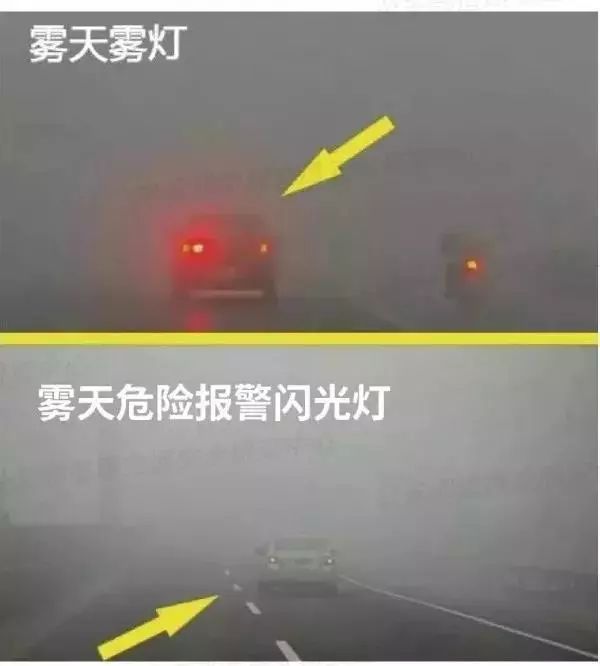 ※ 注意:很多驾驶人朋友存在认识误区,认为恶劣天气下高速行车开启“危险报警闪光灯”(双闪灯)效果会更好,所以只开双闪灯就够了。其实这样理解是不准确的。双闪灯只是看起来“显眼”,但实际效果根本无法与雾灯相比。一是双闪灯没有经过像雾灯那样的特殊设计,发出的光线是类似尾灯那样的不规则散射,而非规则的辐射状;其次,双闪灯的亮度远不如雾灯。在相同距离的情况下,开雾灯的车辆明显要比开双闪灯的车辆更显眼。