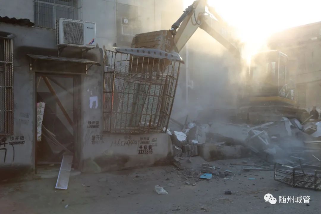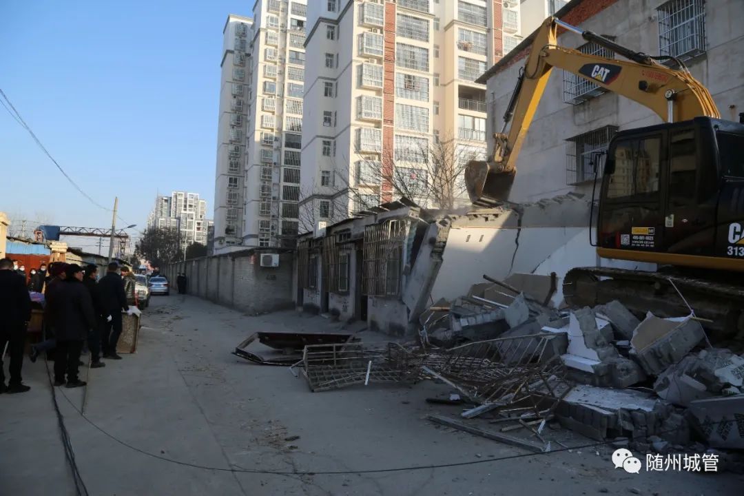 2020年12月31日,随州市城管执法规划大队出动50余名执法人员,在曾都区北郊街道办事处的配合下,动用1台挖掘机,依法对北郊街道办事处孔家坡社区五组某居民的违法建筑进行强制拆除,拆违面积156平方米。