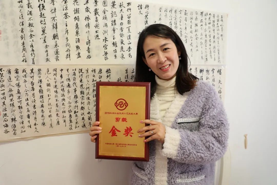 2019年,施圆圆荣获湖北省民间工艺技能大赛剪纸金奖,获奖后的她笑着说道,“剪纸艺术已经成为我生命中的一部分,我热爱这门艺术,我也希望通过自己努力,带动更多地人了解剪纸艺术的魅力、传承剪纸艺术。”