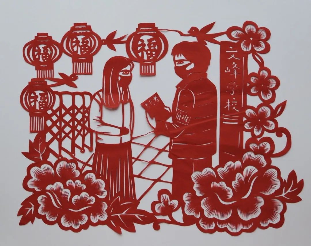 2020年,新冠肺炎突如其来。施圆圆作为文峰学校教师参与到学校值守工作中,在抗疫过程中,她感受到同事们在面对磨难时的坚韧与顽强,于是,她想用剪纸艺术记录着抗疫过程中的点点滴滴,记录着大家战胜疫情的信心与决心。