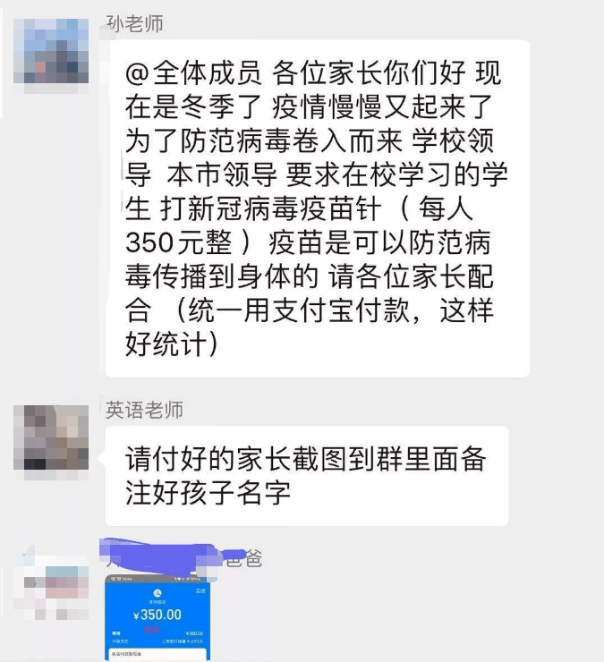 近日就有诈骗分子冒充老师,悄悄潜入学校的班级群里,以收取新冠疫苗费用为由,对群内家长进行诈骗。