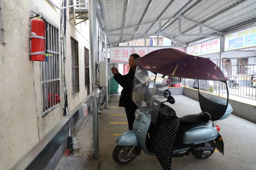走进停车棚,棚内不见一根明线,所有带线电路都有安全保护,墙上只留充电插头。据舜井道社区党委副书记朱伟勋介绍,“平安停车棚设有30个充电位,可供停车70余辆,解决了小区居民电动车充电、停车需求。从选址到停车棚建设,下沉工作队提供了很多合理建议,车棚有静音棚顶,完备的排水措施,周围居民再不用为雨天的噪音发愁,车棚旁边建有快递存放点,方便住户收取快递……”
