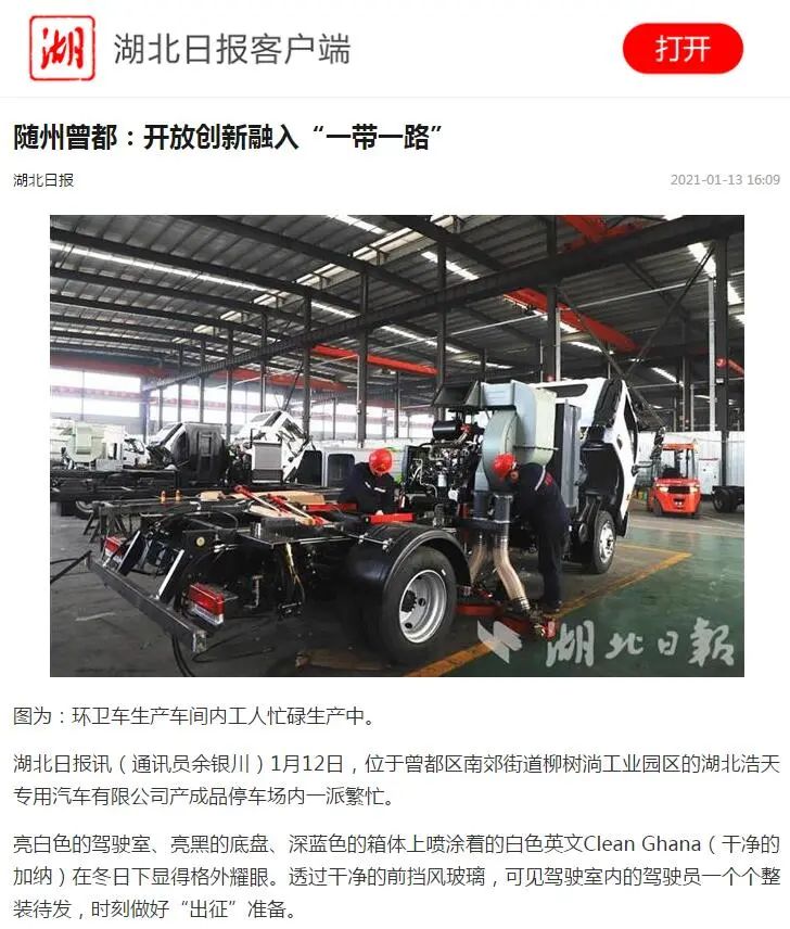 “这是我们2021年发出的第一笔外贸出口订单,包括压缩式垃圾车、钩臂式垃圾车、摆臂式垃圾车、真空吸污车等5个车型共160台,订单总金额450万美元。”浩天专汽负责人罗强说,今天发出的是第一批75台压缩式清运车,先抵达天津港,随后被运往“一带一路”上的“黄金海岸”——加纳。