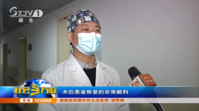 【采访】曾都医院普外科主治医师 胡竞峥:术后患者恢复的非常顺利,没有出现其它并发症。目前精神状态良好,近几天即可痊愈出院。