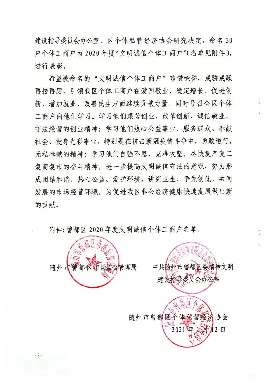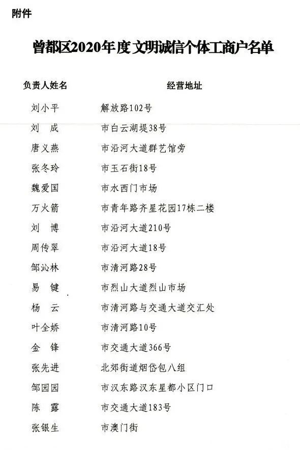 附件:曾都区2020年度文明诚信个体工商户名单。