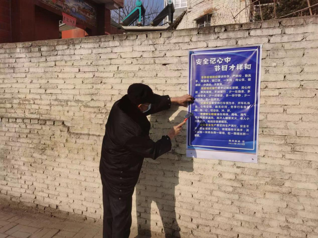 为全面做好冬季安全工作,近日,南郊街道在辖区范围内对冬季疫情防控、城区禁鞭、交通安全、冬季安全取暖、企业安全生产等工作开展安全隐患大排查行动。组建5个工作专班深入小区楼栋、村湾、企业工厂,扎实开展安全宣传和隐患排查。