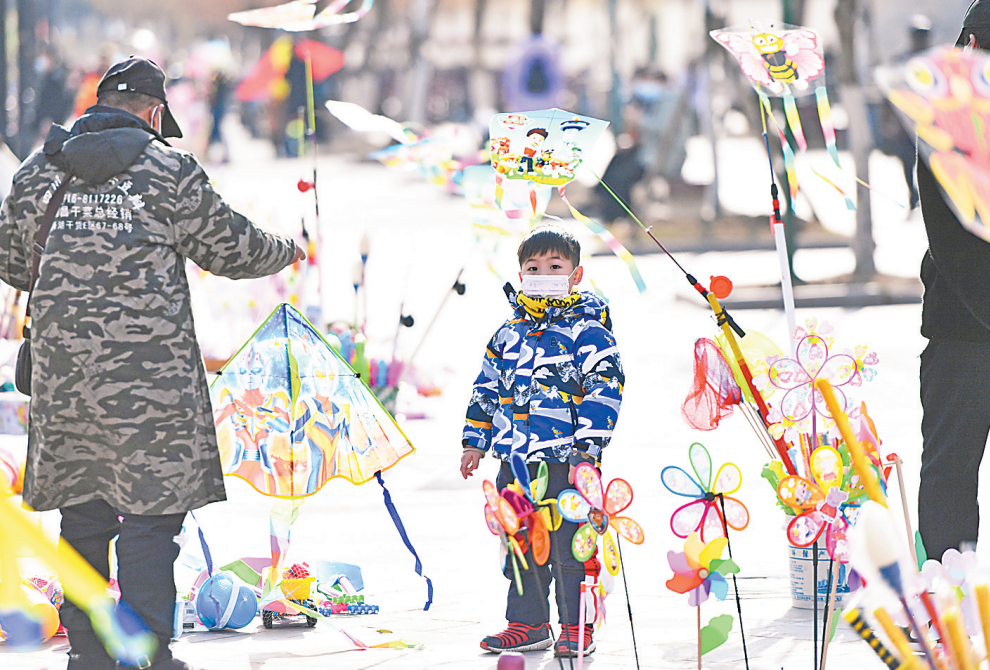 2021年1月17日,汉口江滩微风轻拂,阳光正好,不少市民放起风筝,度过一个冬日暖阳陪伴下的惬意假日。