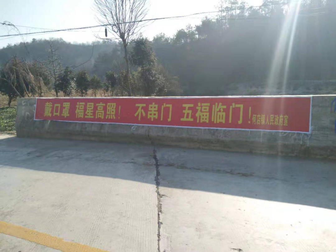 “戴口罩,福星高照!不串门,五福临门!”在何店镇大街小巷、交通要道、村组路口等重要点位均可以看到此类暖心标语。据悉,该镇专门印制了一大批防疫与春节祝福相结合的暖心标语,提醒居民群众养成戴口罩、勤洗手、不串门的良好个人卫生习惯,营造疫情群防群控的宣传氛围。
