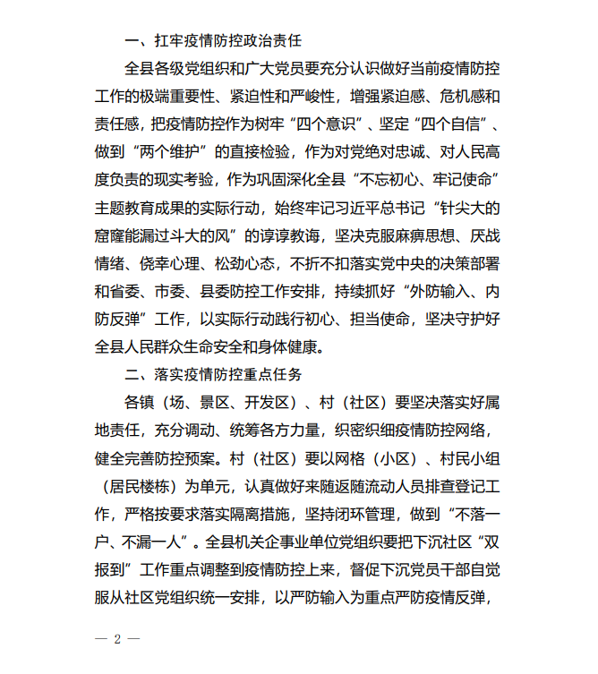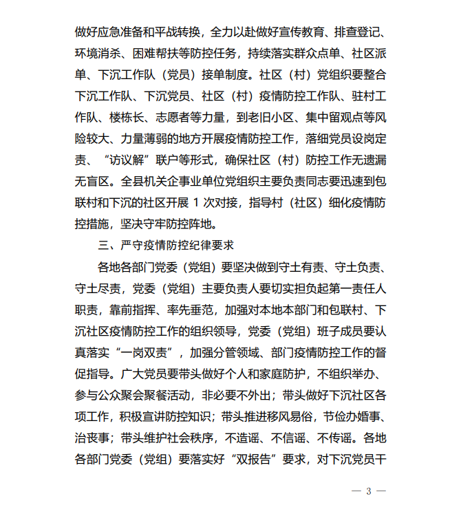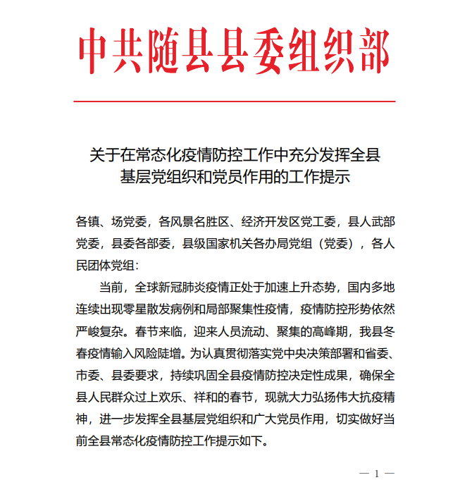 县委组织部关于在常态化疫情防控工作中充分发挥全县基层党组织和党员作用的工作提示
