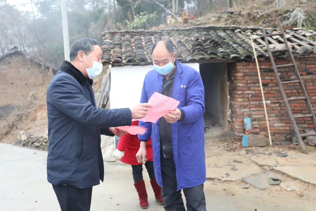 “老王,儿子今年不回来过年了,你们老两口在家,有什么困难要及时跟村里说。”1月25日,天空下着蒙蒙细雨,洛阳镇黄金堂村党支部书记郭远红再次来到村民王开民家中,细心叮嘱道。