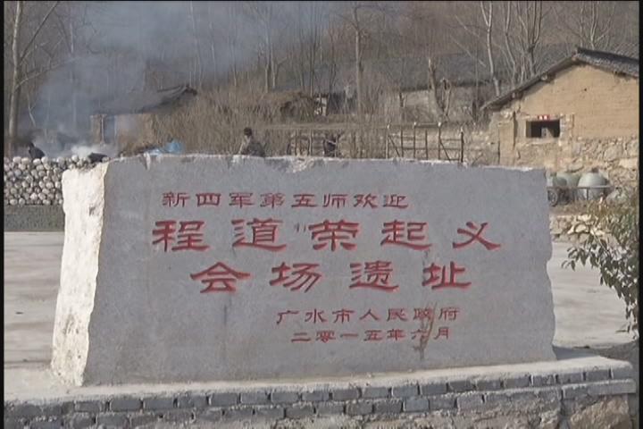 原来,1945年,国民党豫南挺进军第十三纵队司令程道荣率部5千余人起义,被新四军第五师收编一事就发生在这里,李奶奶所描述的正是当时的情景。记者看到,在浆溪店尹家湾村头的小广场上,还专门设立了一块“程道荣起义会场遗址”的革命旧址标识牌。