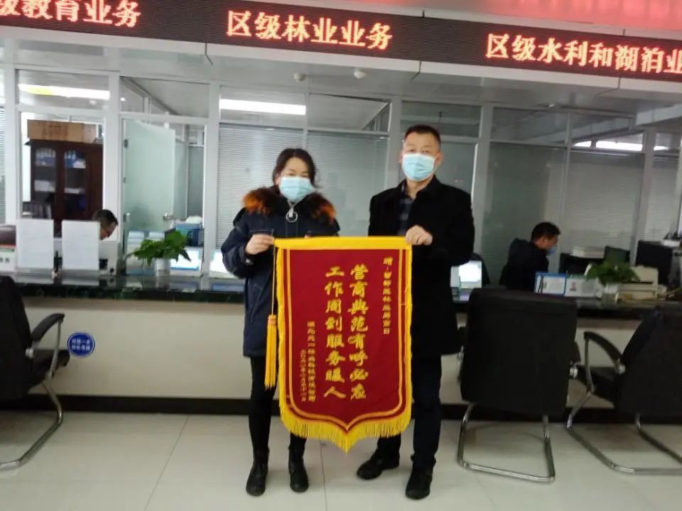1月28日,湖北天一林业科技有限公司工作人员将一面写有“营商典范有呼必应,工作周到服务暖人”的锦旗送至政务服务大厅曾都区林业局业务窗口。